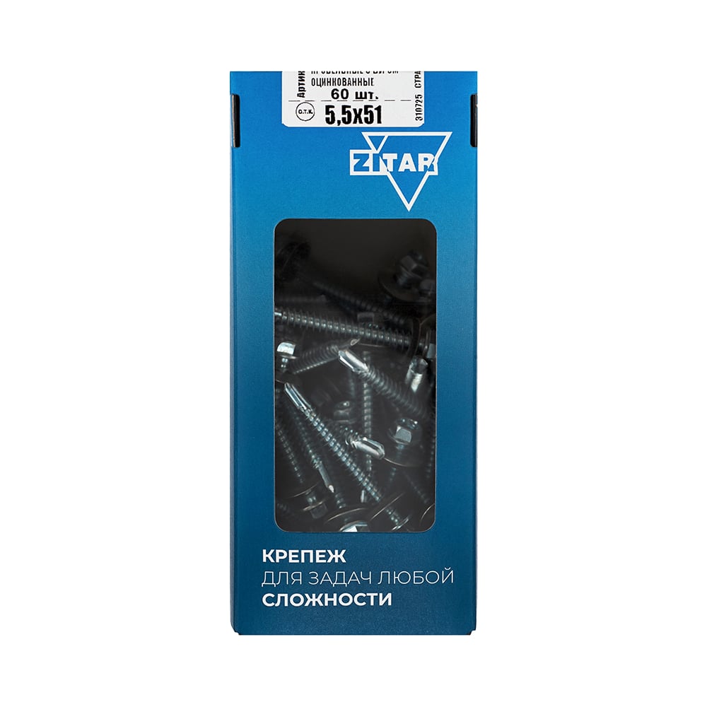 Саморез КР ZP со сверлом, 5,5x51 мм, 60 шт. в коробке с окном Zitar 124629
