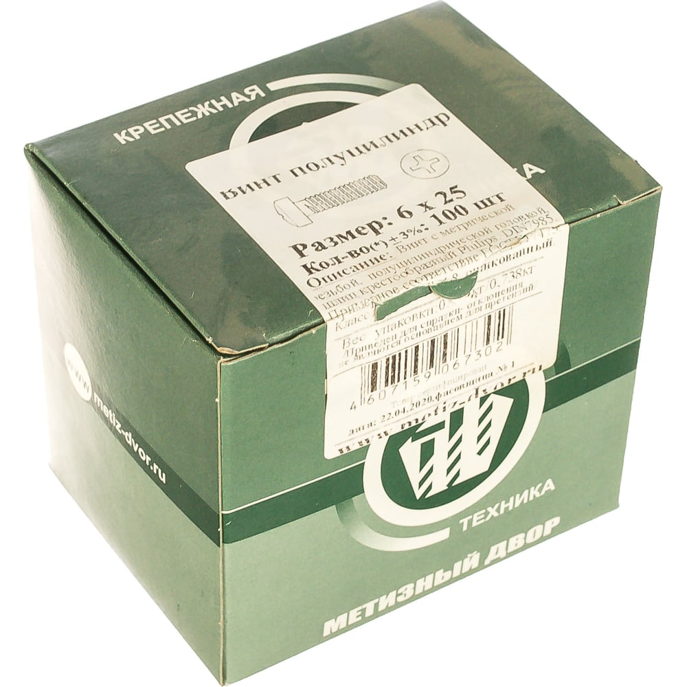 Винт с полуцилиндрической головкой Метизный двор 6x25 DIN 7985, 100 шт. 4607159067302