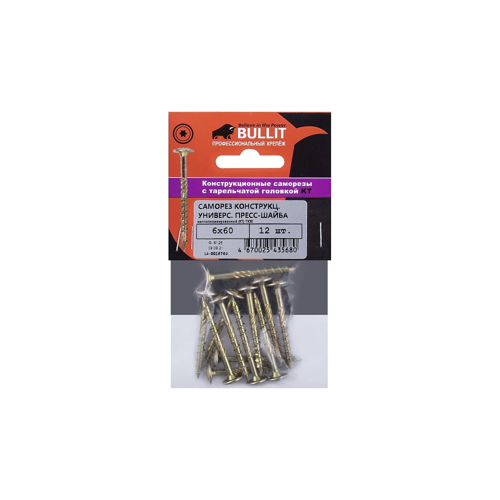 Конструкционный саморез ГОСКРЕП 6,0 x 60 желт., пресс, шайба TX30 12 шт. 14-0016760