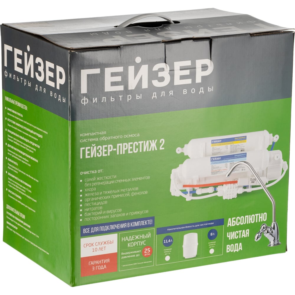 | Картридж в комплекте | предфильтр, обратноосмотическая мембрана, постфильтр |