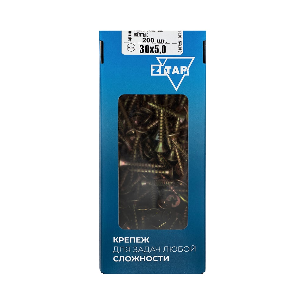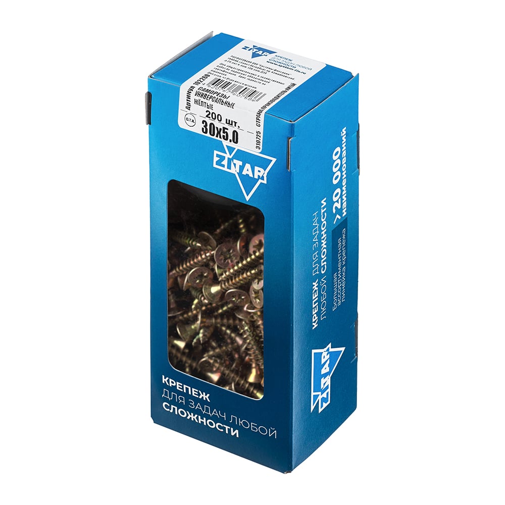 Универсальные саморезы, желтые, 30x5,0 мм, 200 шт., коробка с окном Zitar 102260