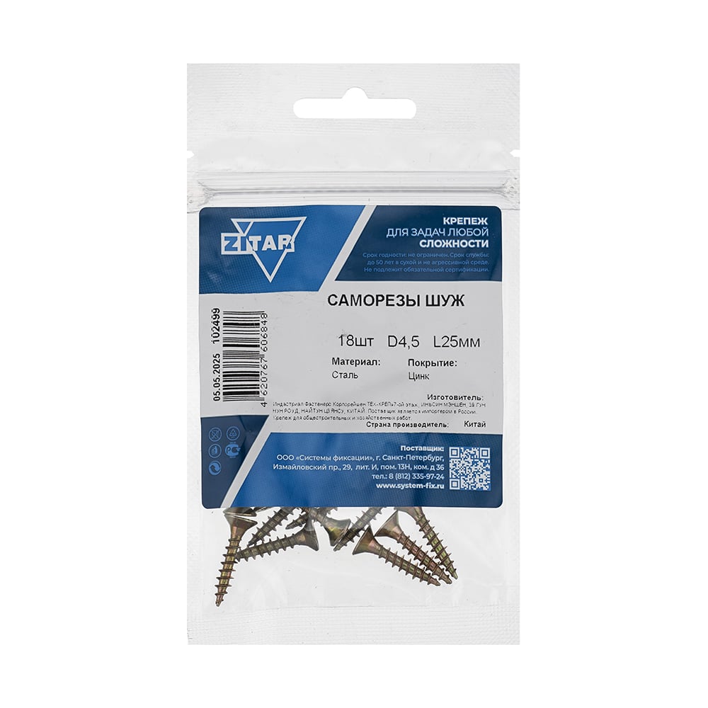 Саморез ШУж с потайной головкой 4,5x25 мм, 18 шт., пакет Zitar 102499