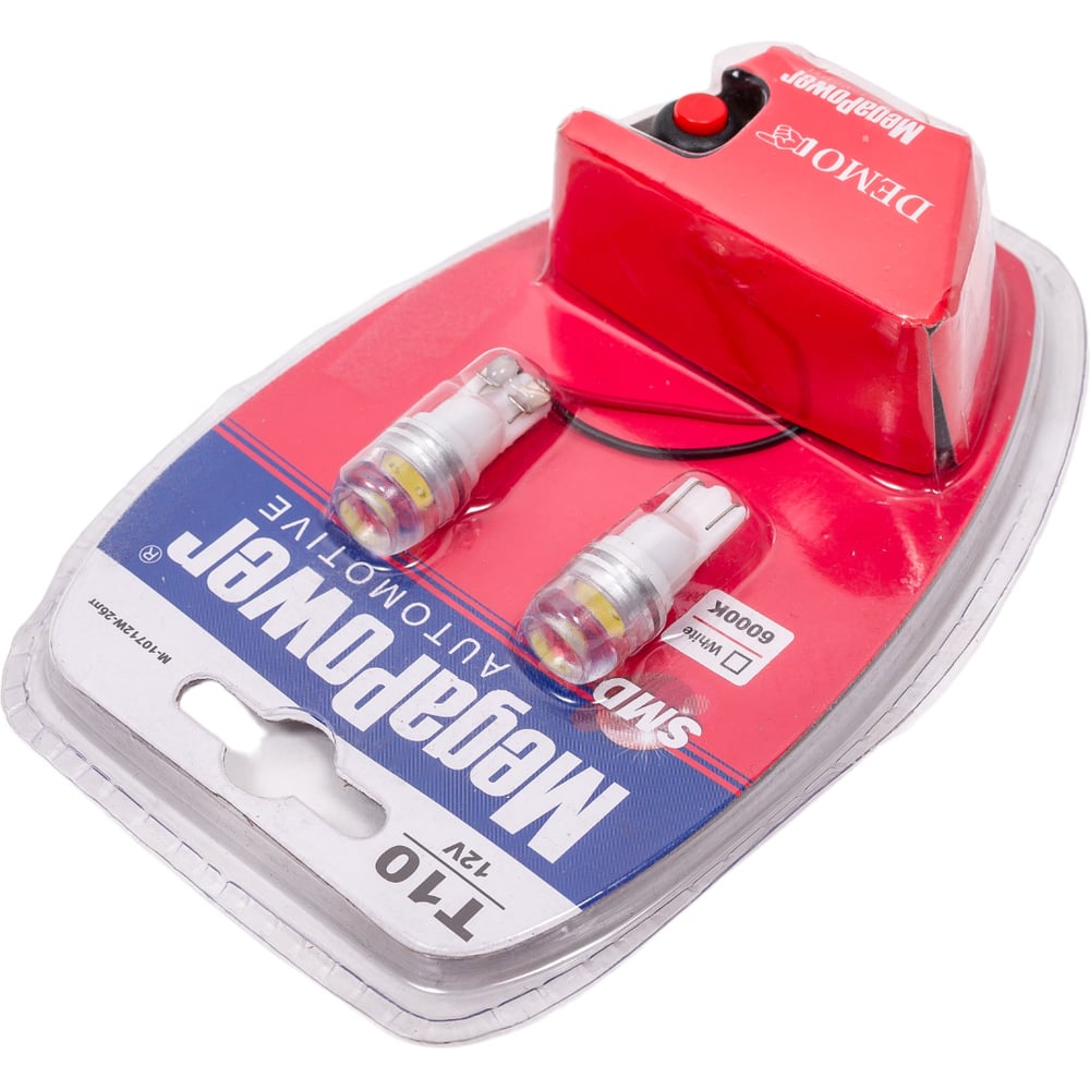 Автолампа T10W W2,1x9,5d 1 SMD 7080 WHITE 6000K 80лм 12V 10 100 10712 Megapower M-10712W-2блт