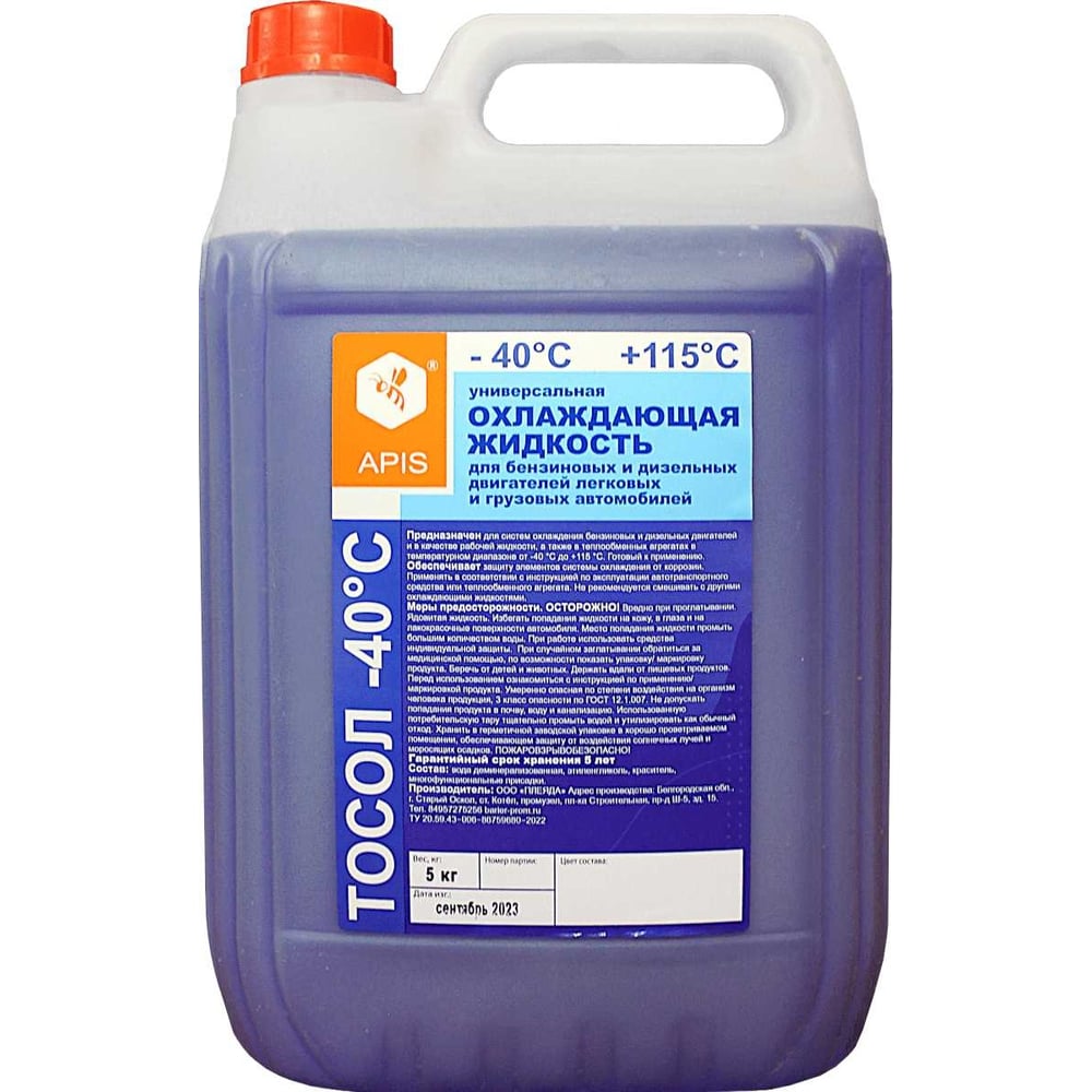 Охлаждающая жидкость для двигателя автомобиля APIS Тосол-40 5 кг RUZ-001-0004