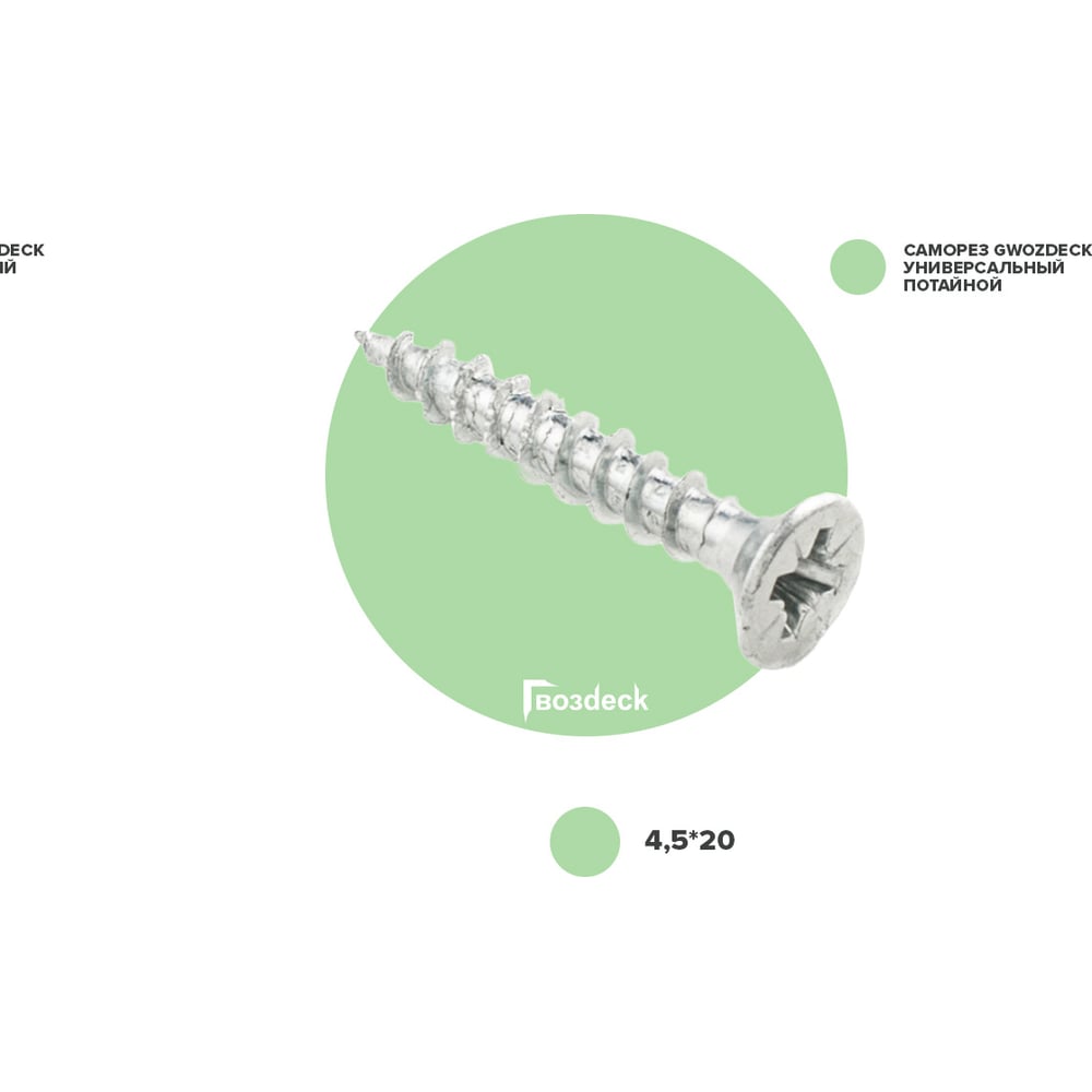 Универсальный саморез по дереву Гвозdeck HR потайной, 4.5х20 мм, цинк, Pz, промышленная упаковка 13000 шт 20124520WHPZHR9