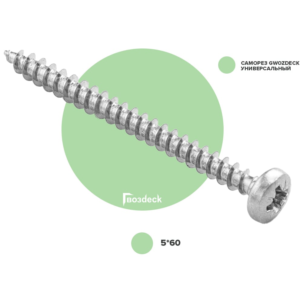 Универсальный саморез по дереву Гвозdeck HR, сферический, 5х60 мм, цинк, Pz, промышленная упаковка 2000 шт. 20145060WHPZHR9