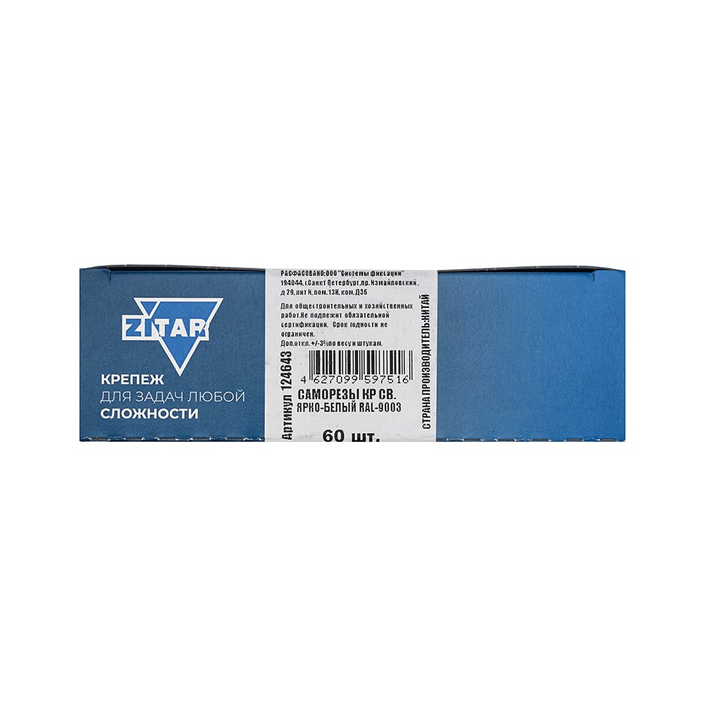 Саморез КР со сверлом, 4,8x28 мм, RAL-9003 ярко-белый, 60 шт. в коробке с окном Zitar 124643