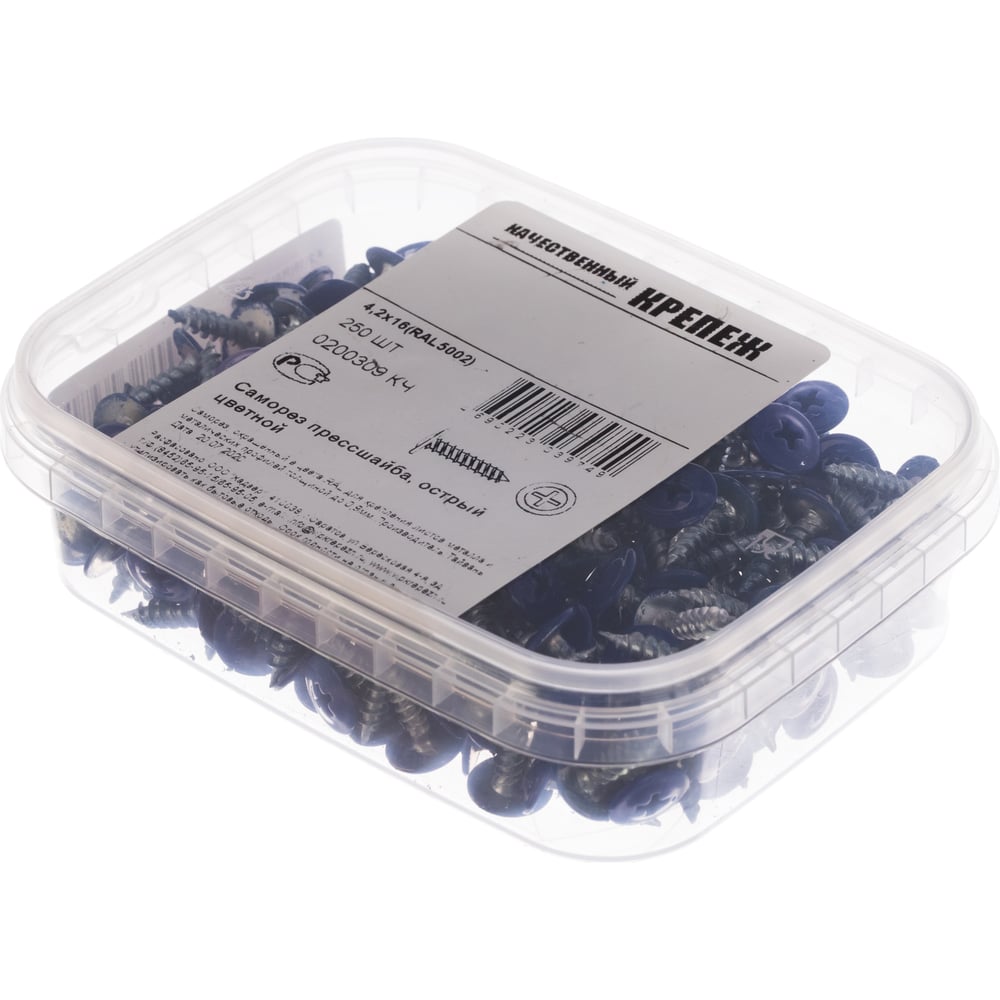 Прессшайба Качественный КРЕПЕЖ 4.2х16 мм, ультрамарин RAL 5002, острая, 250 шт 0200309 КЧ