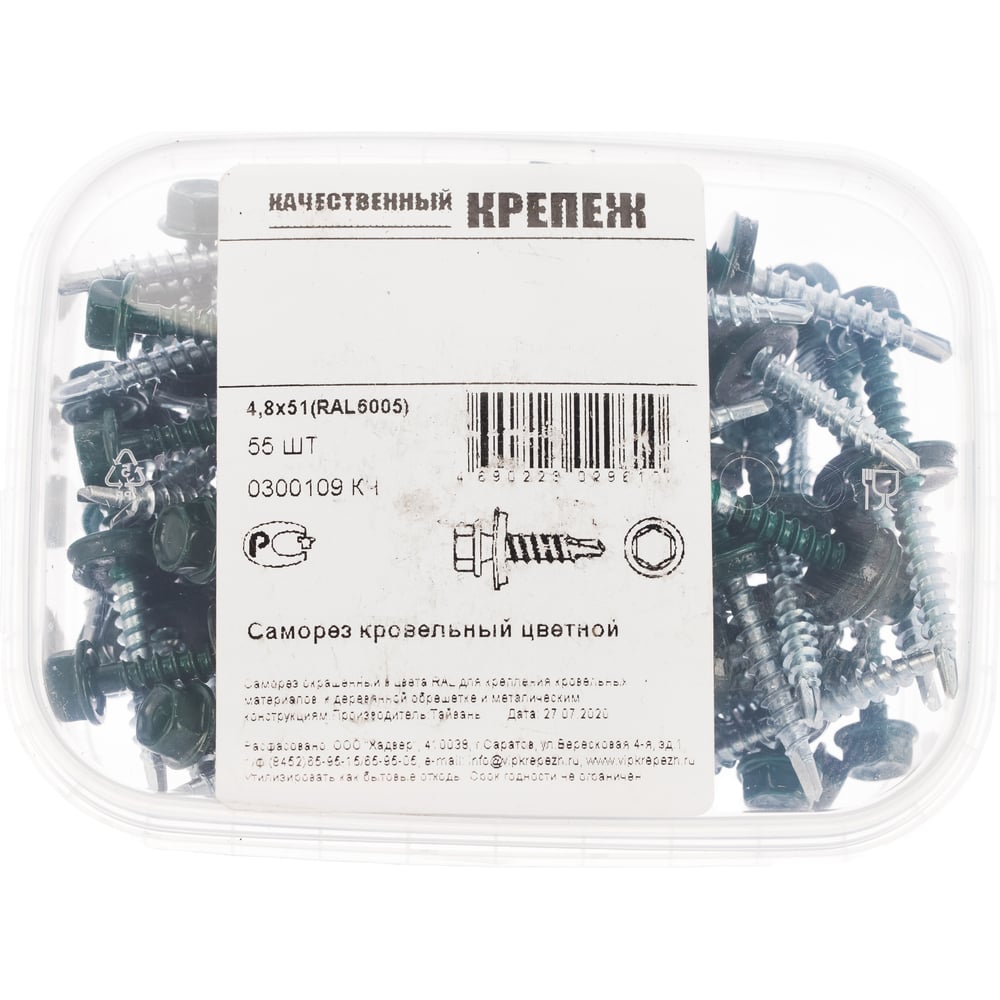 Кровельный саморез Качественный КРЕПЕЖ зеленый мох RAL 6005, 4.8х51 мм, 55 шт 0300109 КЧ