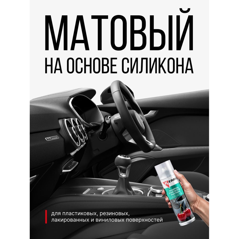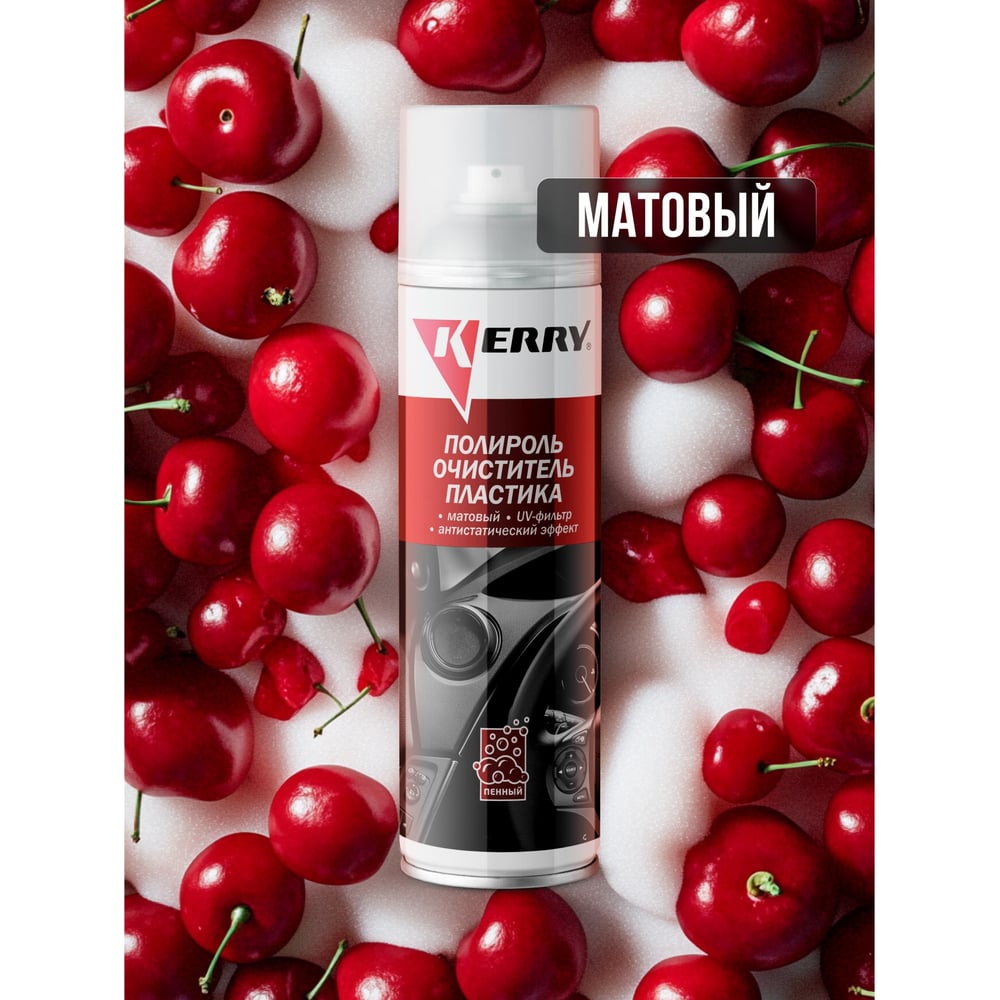 Пенный полироль-очиститель для пластика салона KERRY с матовым эффектом, вишня, аэрозоль 335 мл 11604740