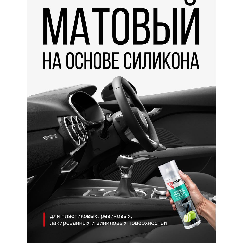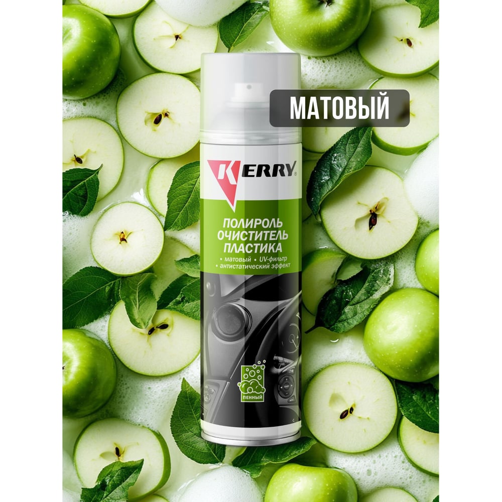 Пенный полироль-очиститель для пластика салона KERRY с матовым эффектом, зеленое яблоко, 335 мл 11604735