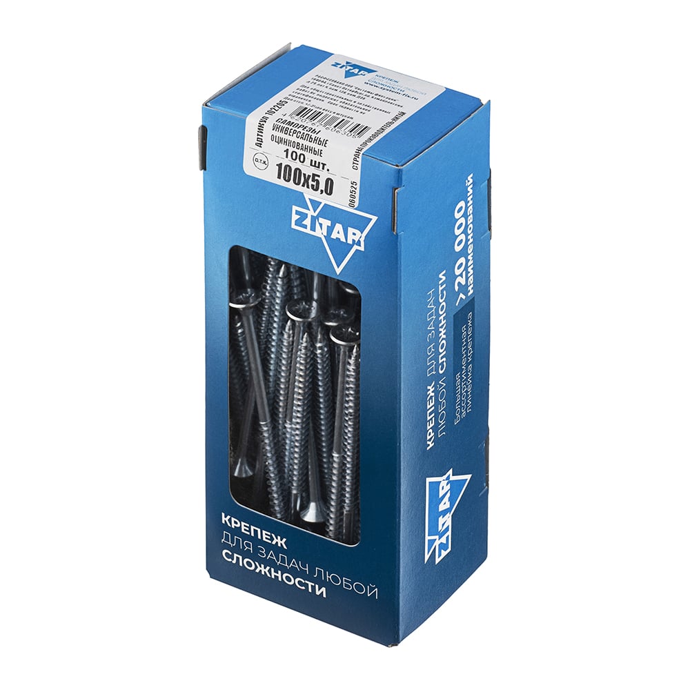 Универсальные саморезы, оцинкованные, 100x5,0 мм, 100 шт., коробка с окном Zitar 102205