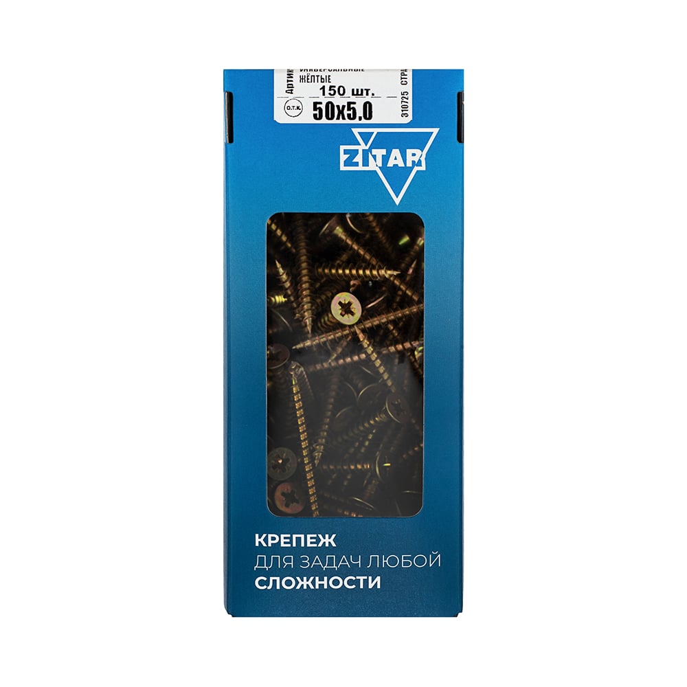 Универсальные саморезы 50x5,0 мм 150 шт желтые коробка с окном Zitar 102263