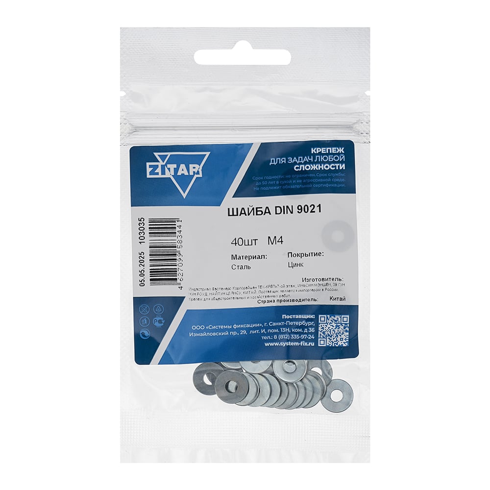 Шайба DIN9021 кузовная оцинкованный M4 40 шт Zitar 103035