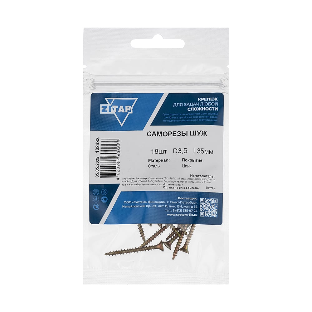 Саморез ШУж с потайной головкой 3,5x35 мм, 18 шт., пакет Zitar 102483