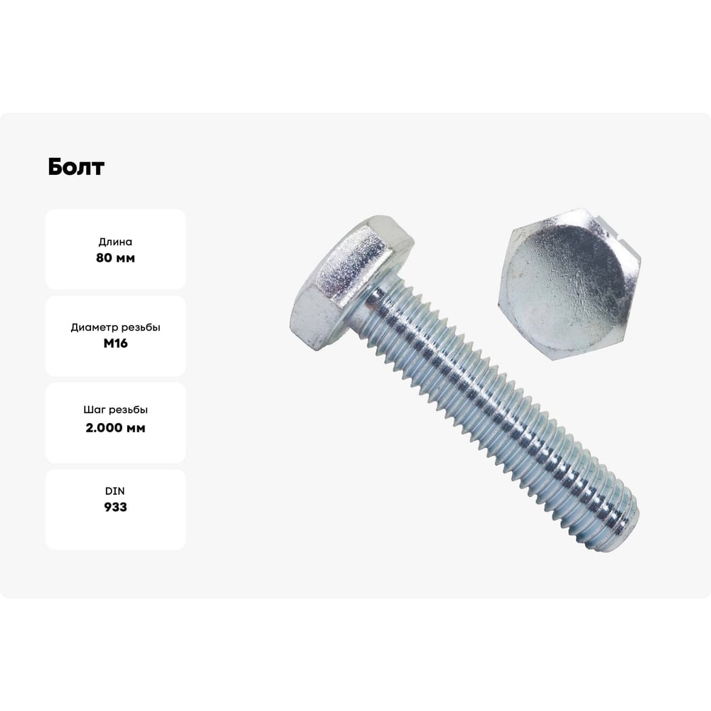 Болт BEFAST DIN 933 (ГОСТ 7798-70, 7805-70), цинк, М16x80, 5 кг 933160805S