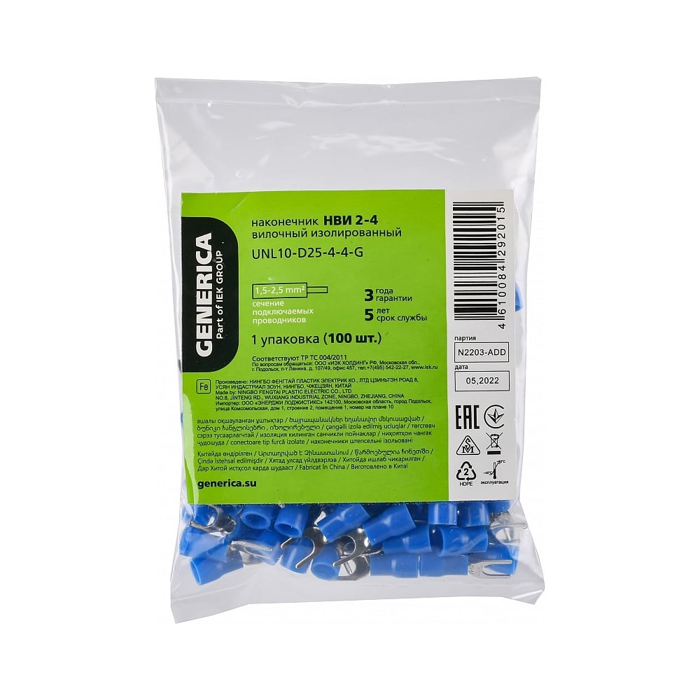 Наконечник GENERICA нви 2-4 вилка 1,5-2,5мм (100шт/упак) UNL10-D25-4-4-G