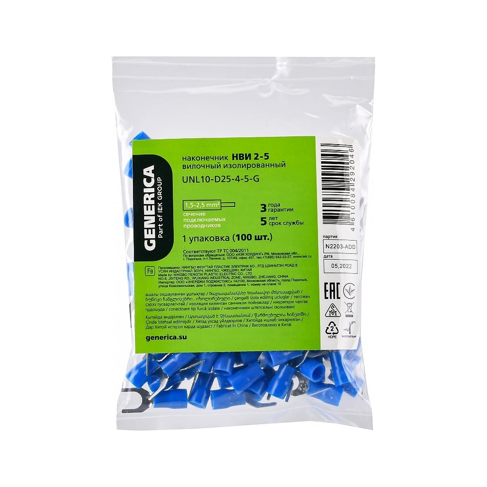 Наконечник GENERICA нви 2-5 вилка 1,5-2,5мм (100шт/упак) UNL10-D25-4-5-G