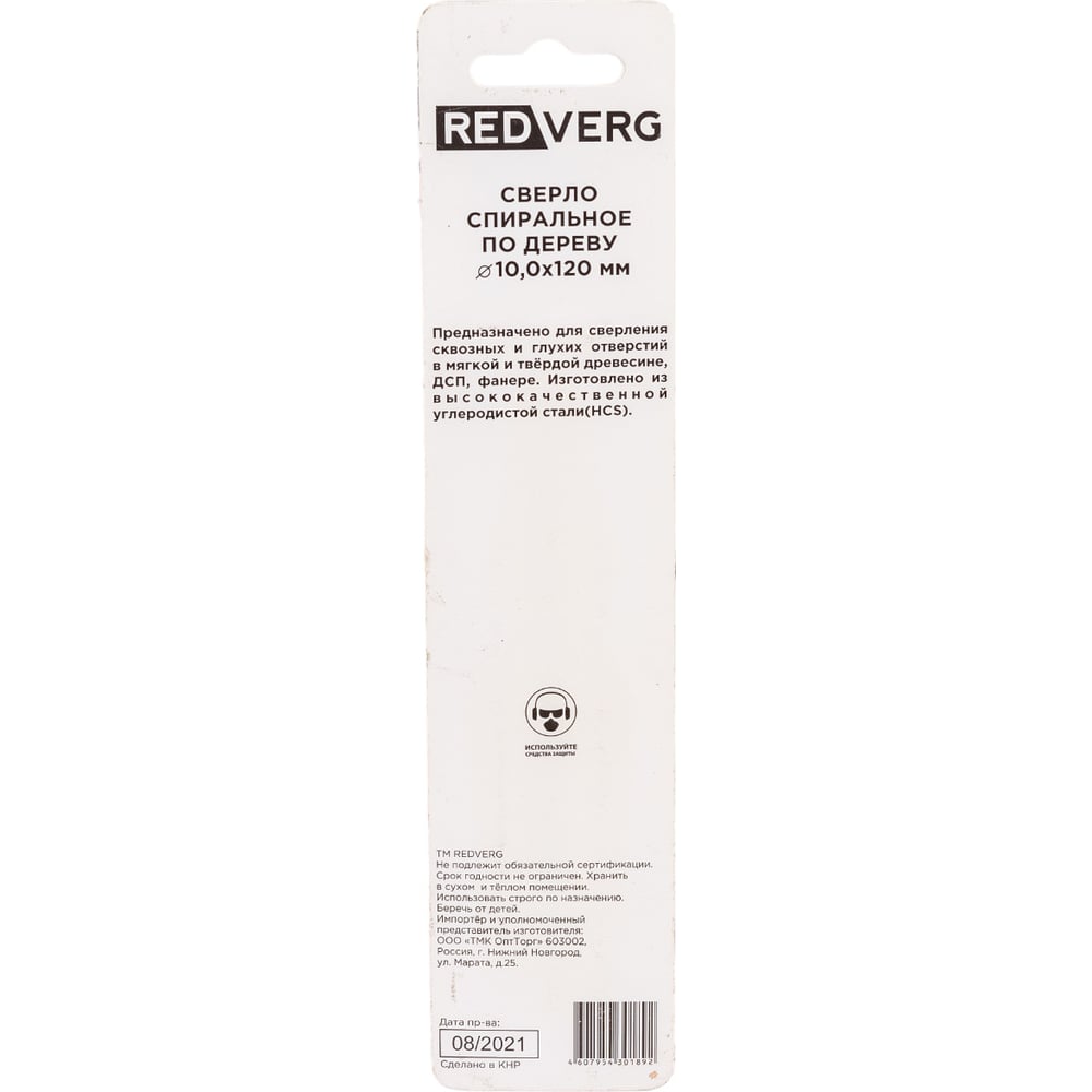 Сверло по дереву HCS (10х80х115 мм) REDVERG 6621127