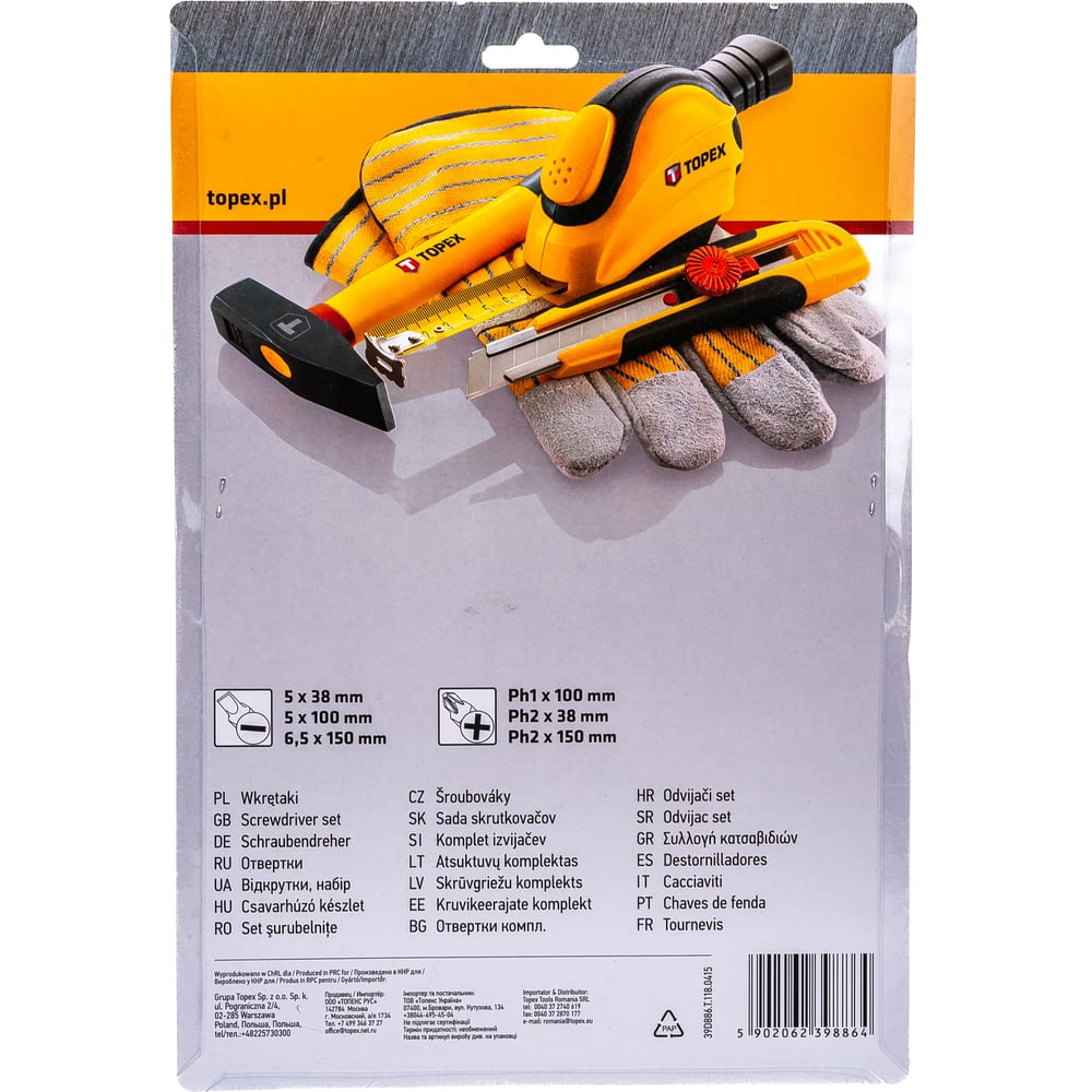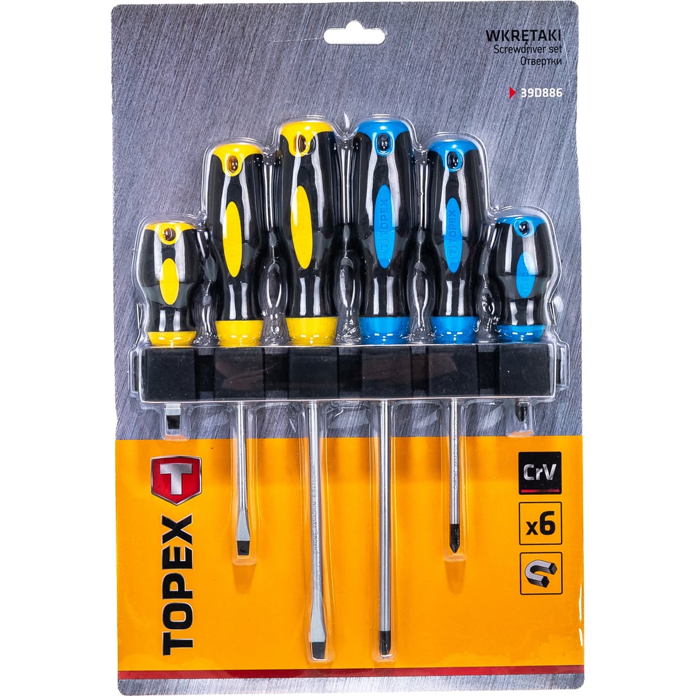 Отвертки 5 x 38 мм, 5 x 100 мм, 6.5 x 150 мм, PH1 x 100 мм, PH2 x 38 мм, PH2 x 150 мм;