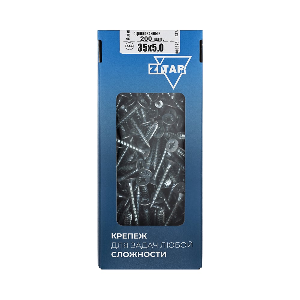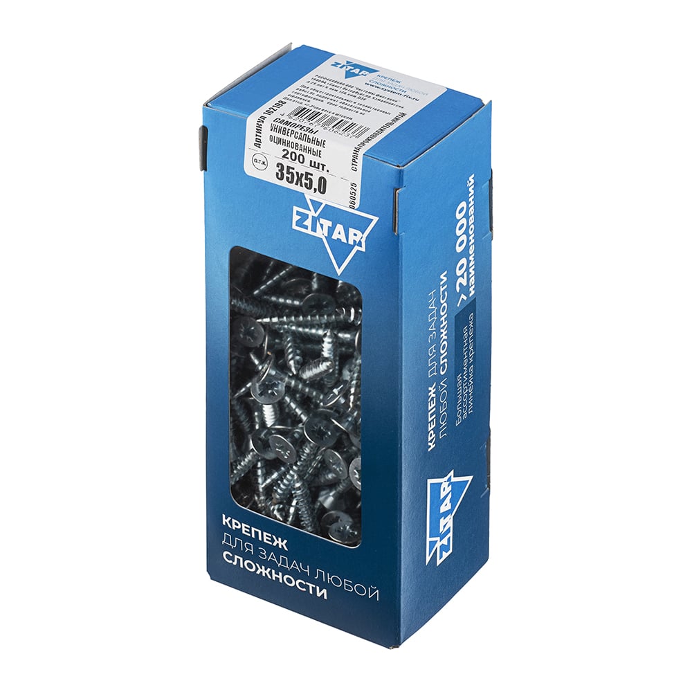 Универсальные саморезы, оцинкованные, 35x5,0 мм, 200 шт., коробка с окном Zitar 102198