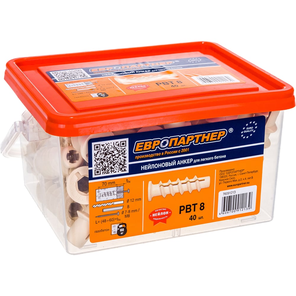 Дюбель для газобетона ЕВРОПАРТНЕР PBT 8, 40 шт. 76091213