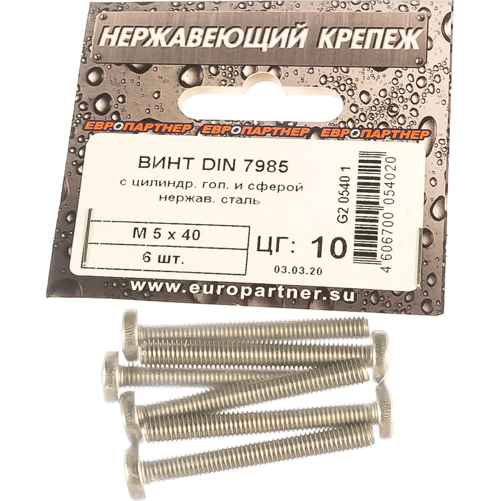 Винт с цилиндрической головкой и сферой ЕВРОПАРТНЕР DIN 7985 М5х40 нержав. сталь 6 шт. G2 0540 1