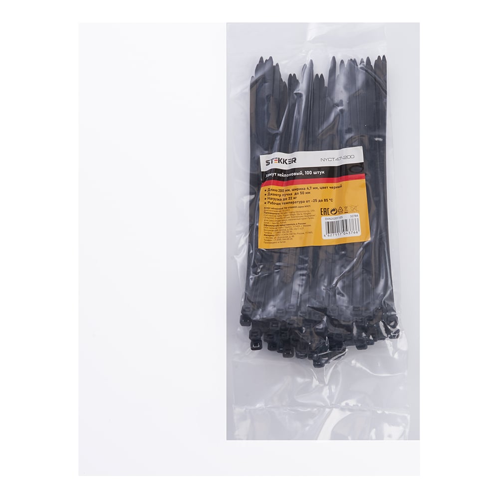 Хомут STEKKER NYCT47-200 нейлоновый 4.7x200 мм d пучка max 50 мм нагрузка 22 кг черный 32784