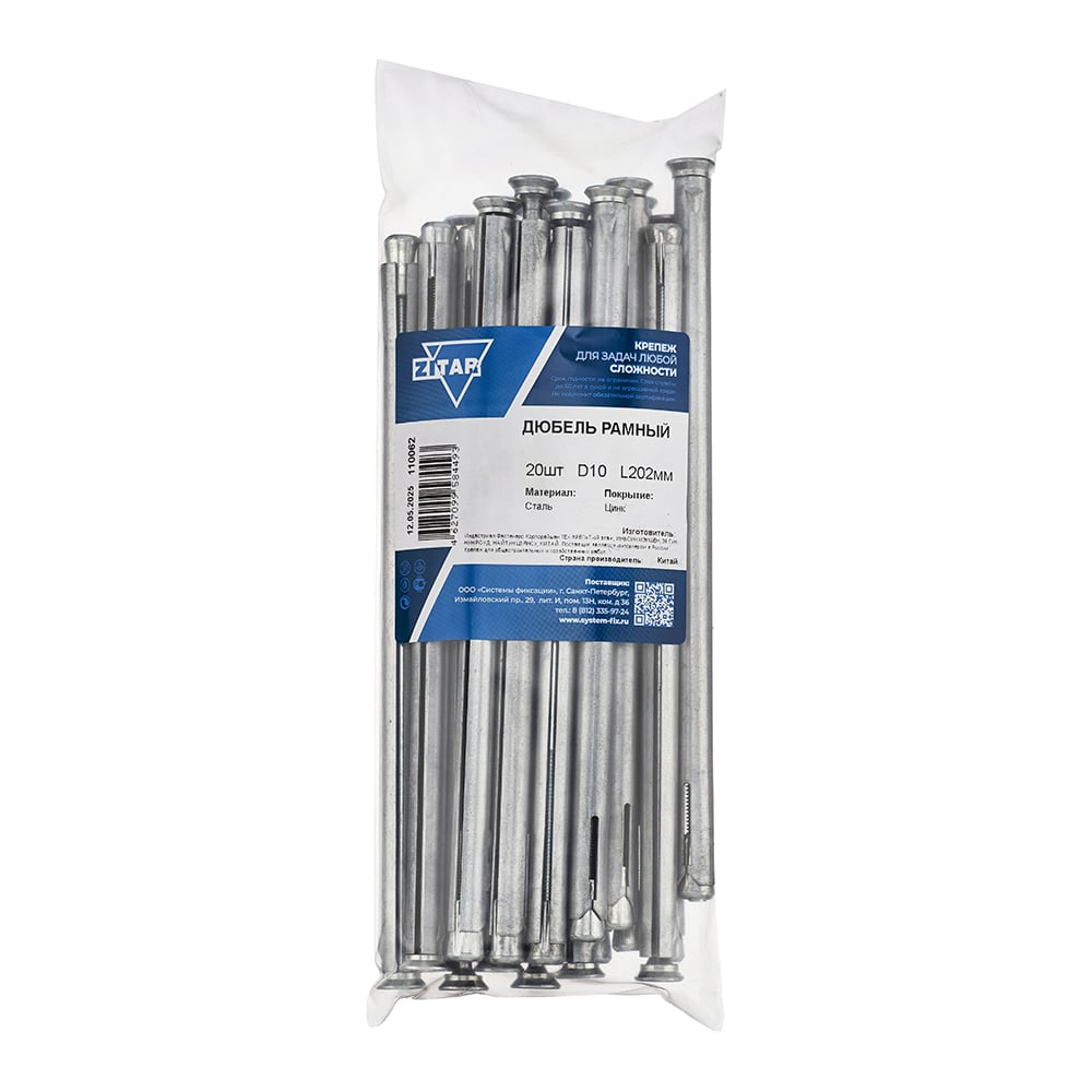 Дюбель металлический рамный 10x202 мм, 20 шт в пакете Zitar 110062