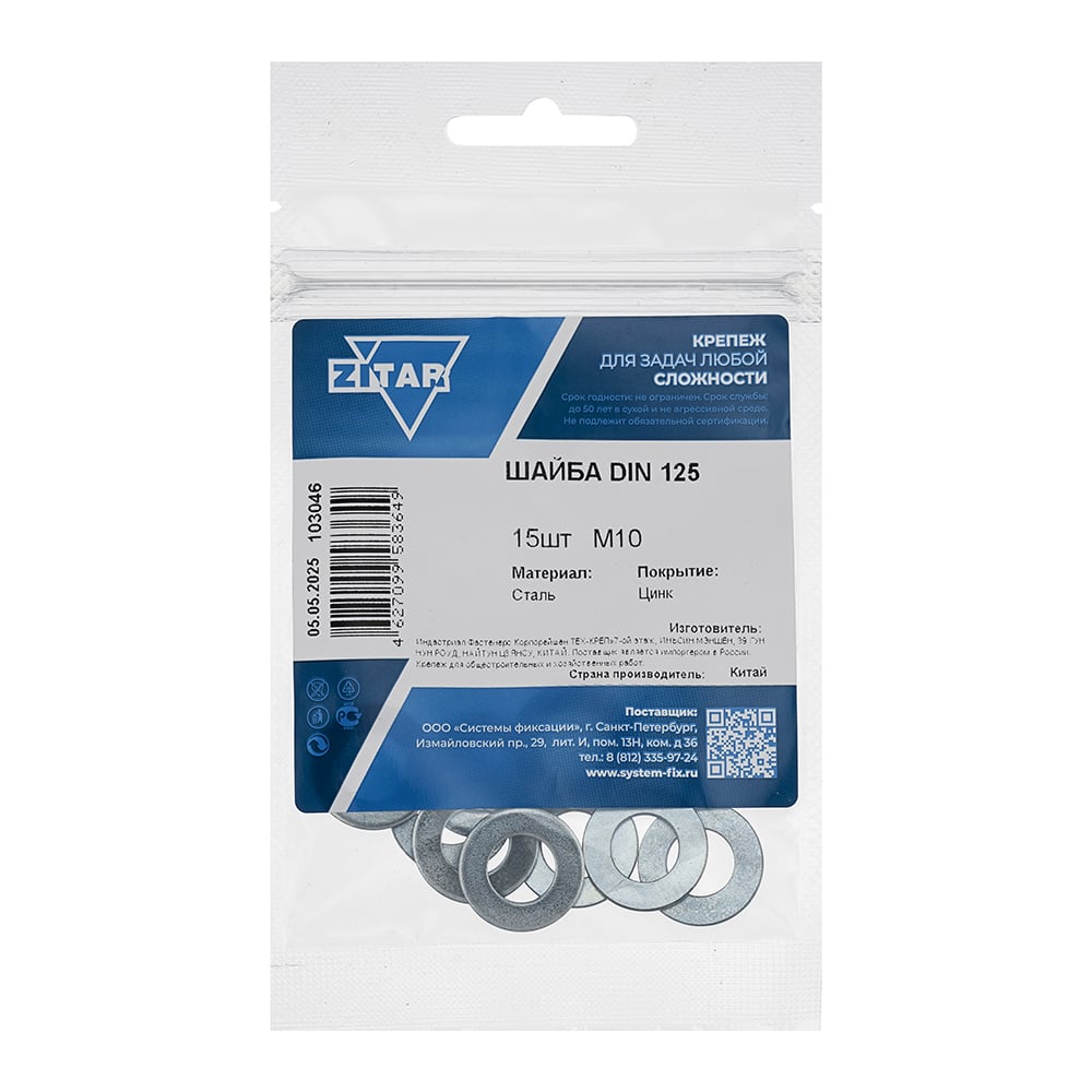 Шайба DIN125а плоская оцинкованный М10 15 шт Zitar 103046