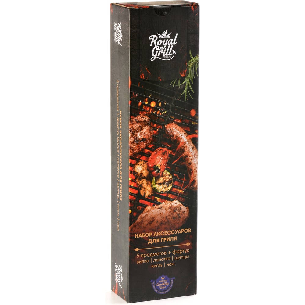 Набор аксессуаров для гриля ROYALGRILL 5 предметов: вилка, лопатка, щипцы, кисть, нож + фартук 80-215