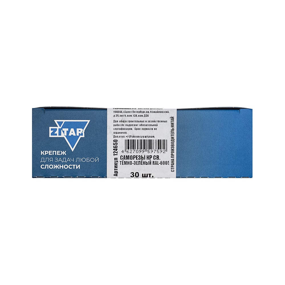 Саморез КР со сверлом, 4,8x70 мм, RAL-6005 темно-зеленый, 30 шт. в коробке с окном Zitar 124650