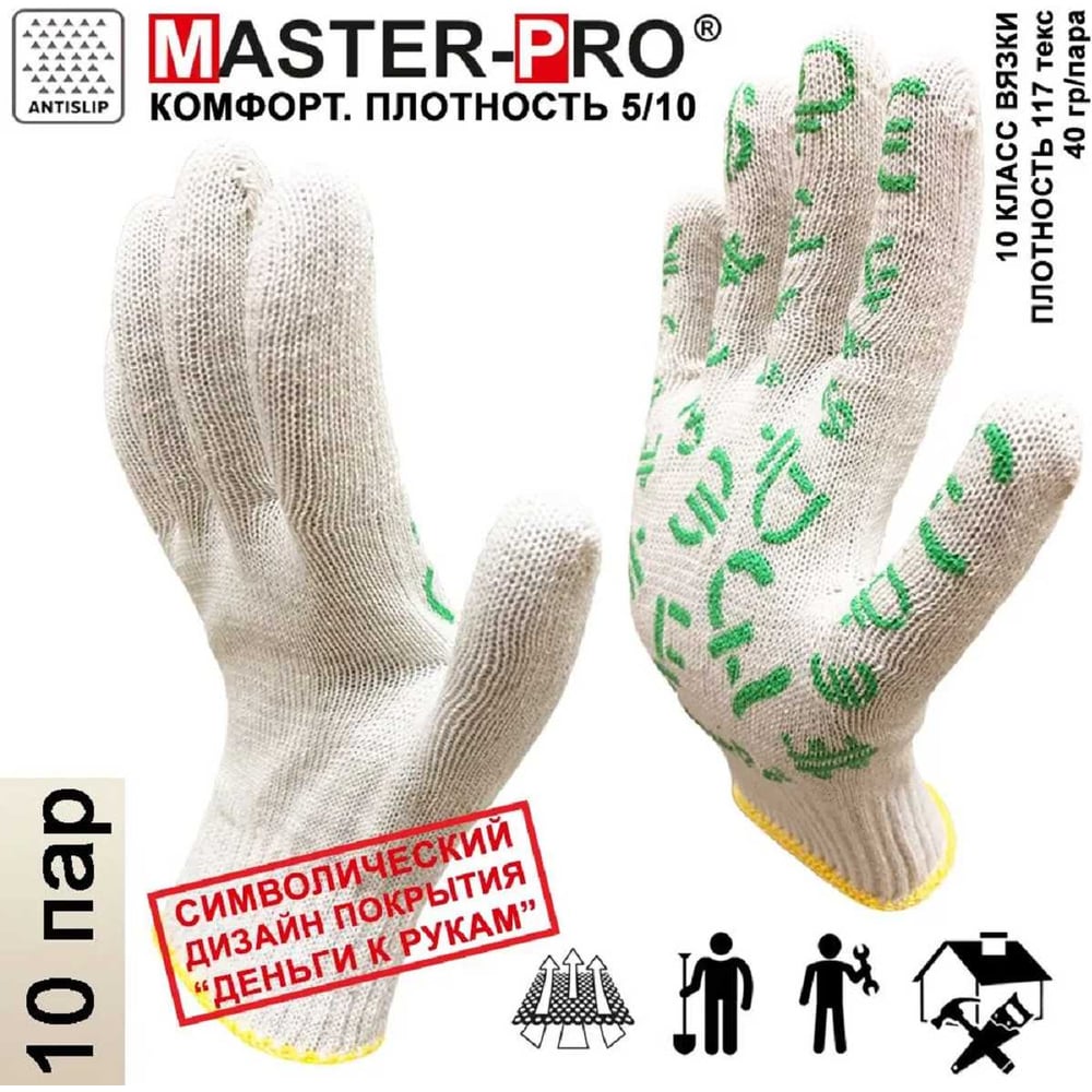 Рабочие перчатки Master-Pro® ФОРЕКС 10 класс вязки, 10 пар 2310-FRX-10-PVC