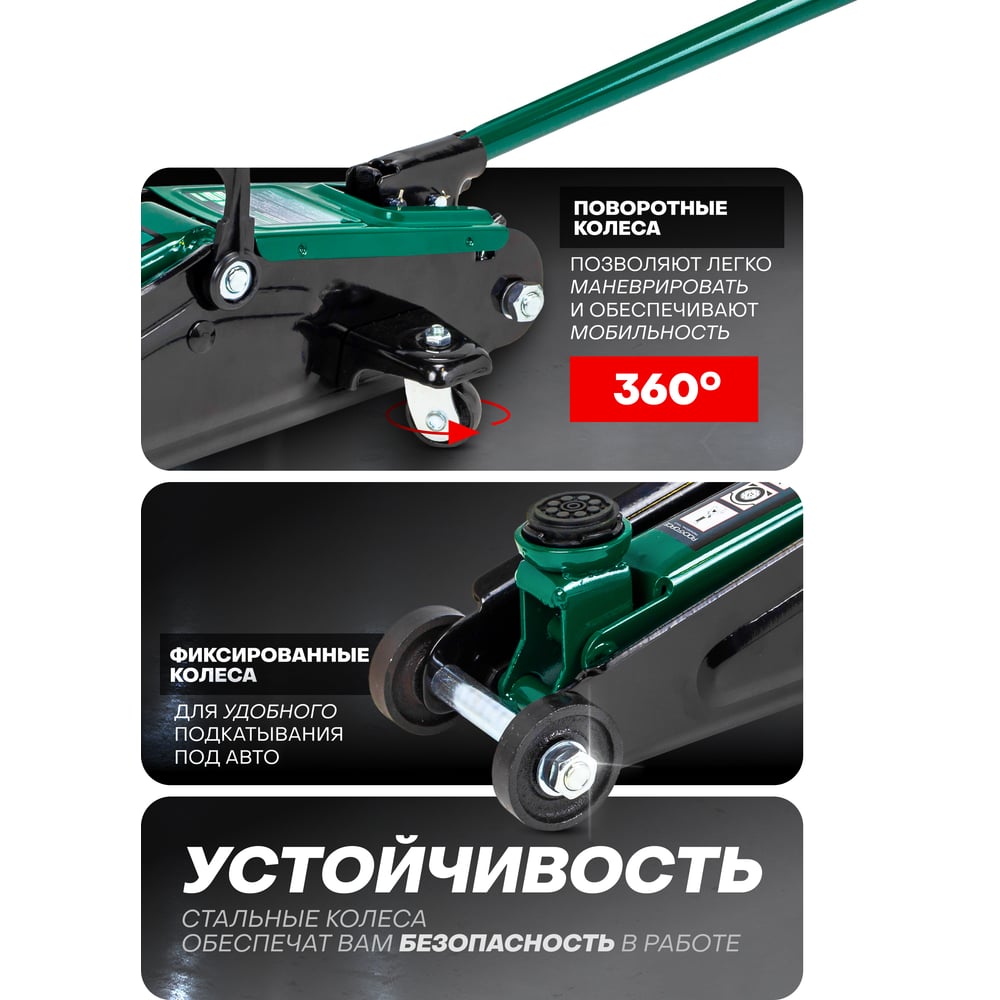 Гидравлический подкатной домкрат с узкой базой Rockforce 3т, высота подъема 135-380 мм RF-T830013(4072)