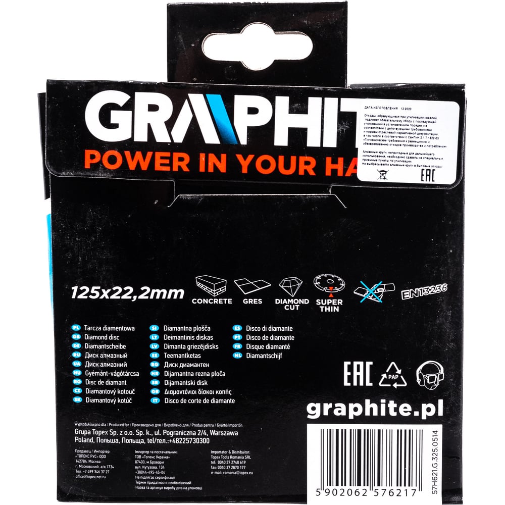 Диск алмазный ультра тонкий 125х22.2 мм turbo GRAPHITE 57H621
