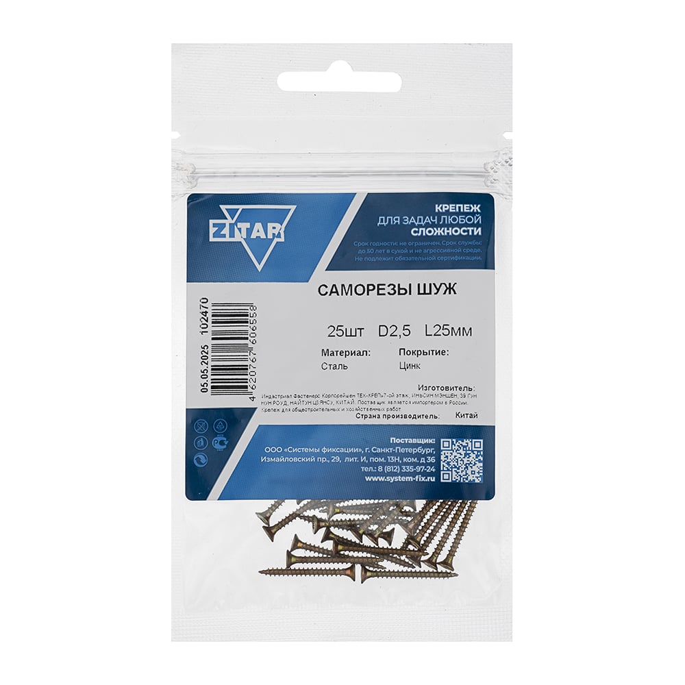 Саморез ШУж с потайной головкой, 2,5x25 мм, 25 шт., пакет Zitar 102470