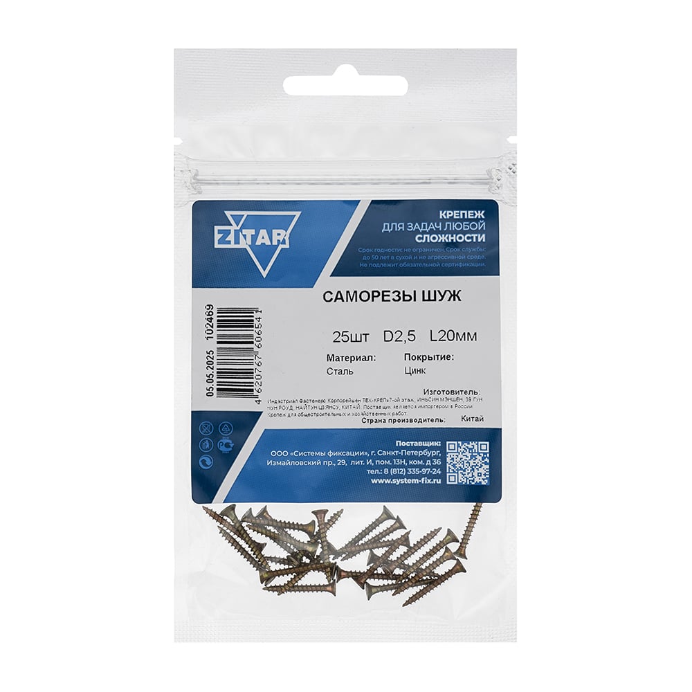 Саморез ШУж 2,5х20 потайная головка 25 шт, пакет Zitar 102469