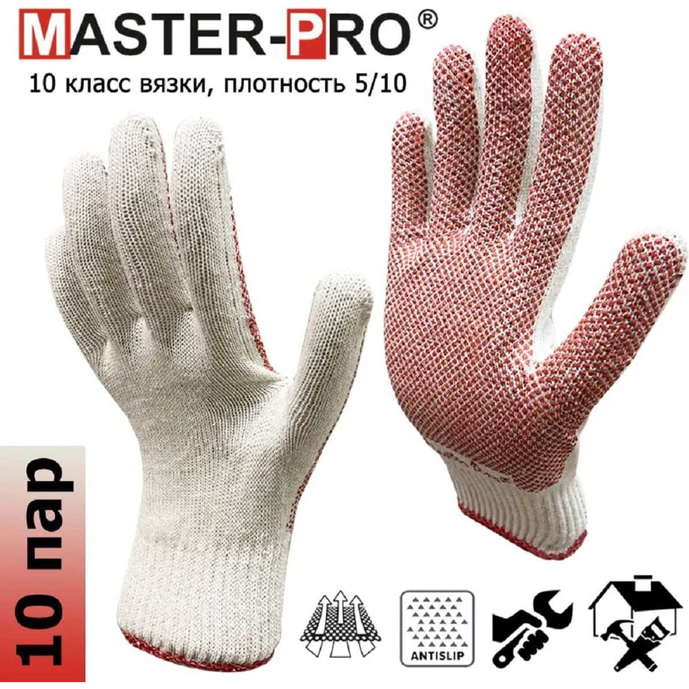Рабочие перчатки Master-Pro® СПЕЦ, 10 пар, 10 класс вязки, ПВХ 3210-SP-10-PVC