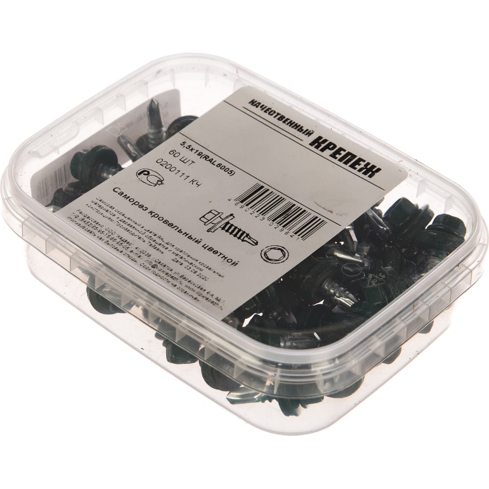 Кровельный саморез Качественный КРЕПЕЖ зеленый мох RAL 6005, 5.5х19 мм, 60 шт 0200111 КЧ
