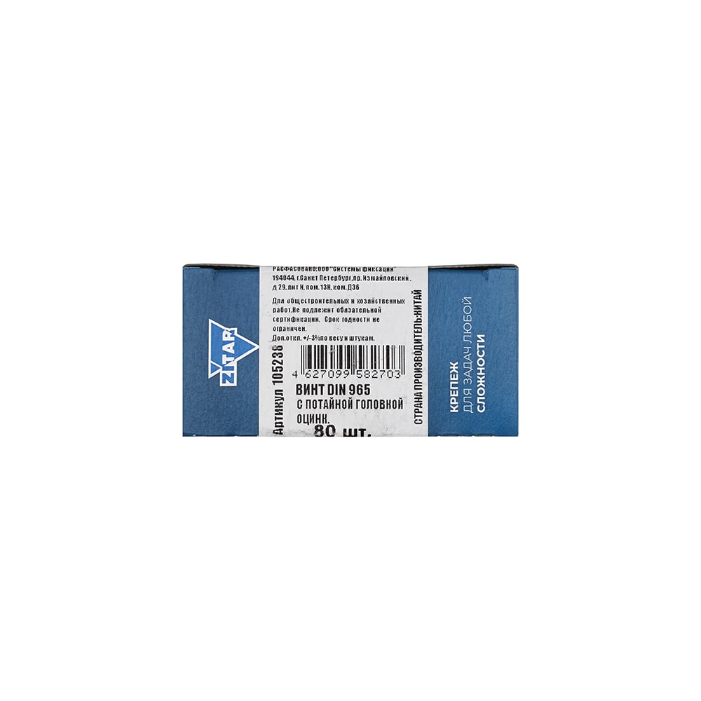 Винт DIN965 с потайной головкой оцинкованный М5x30 мм, 80 шт, коробка с окном Zitar 105238