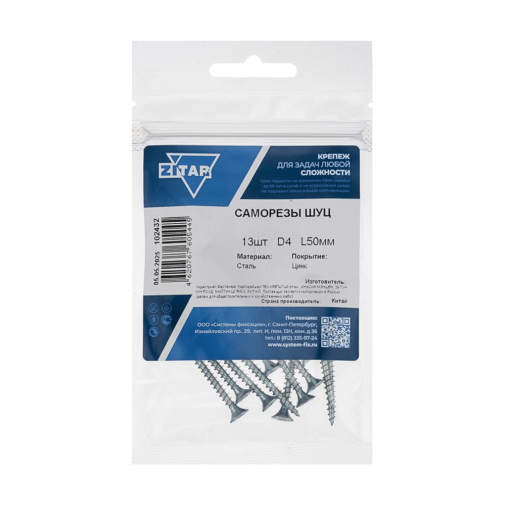 Саморез ШУц с потайной головкой 4,0x50 мм, 13 шт., пакет Zitar 102432