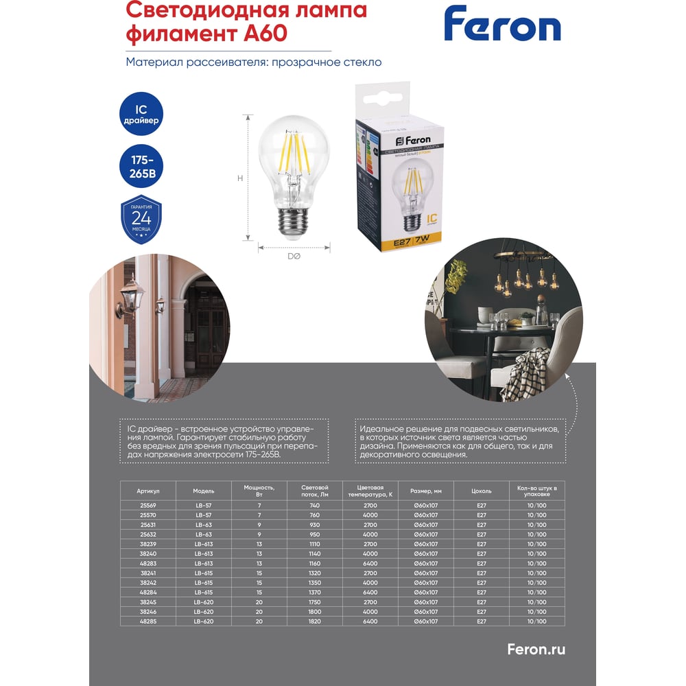 Светодиодная лампа FERON LB-63 9W 230V E27 2700K 25631