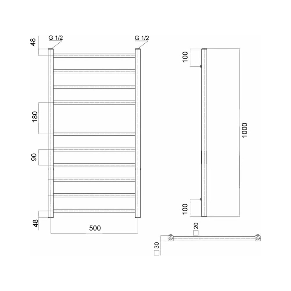 Водяной полотенцесушитель Domoterm Квадро П10 500x1000, xром