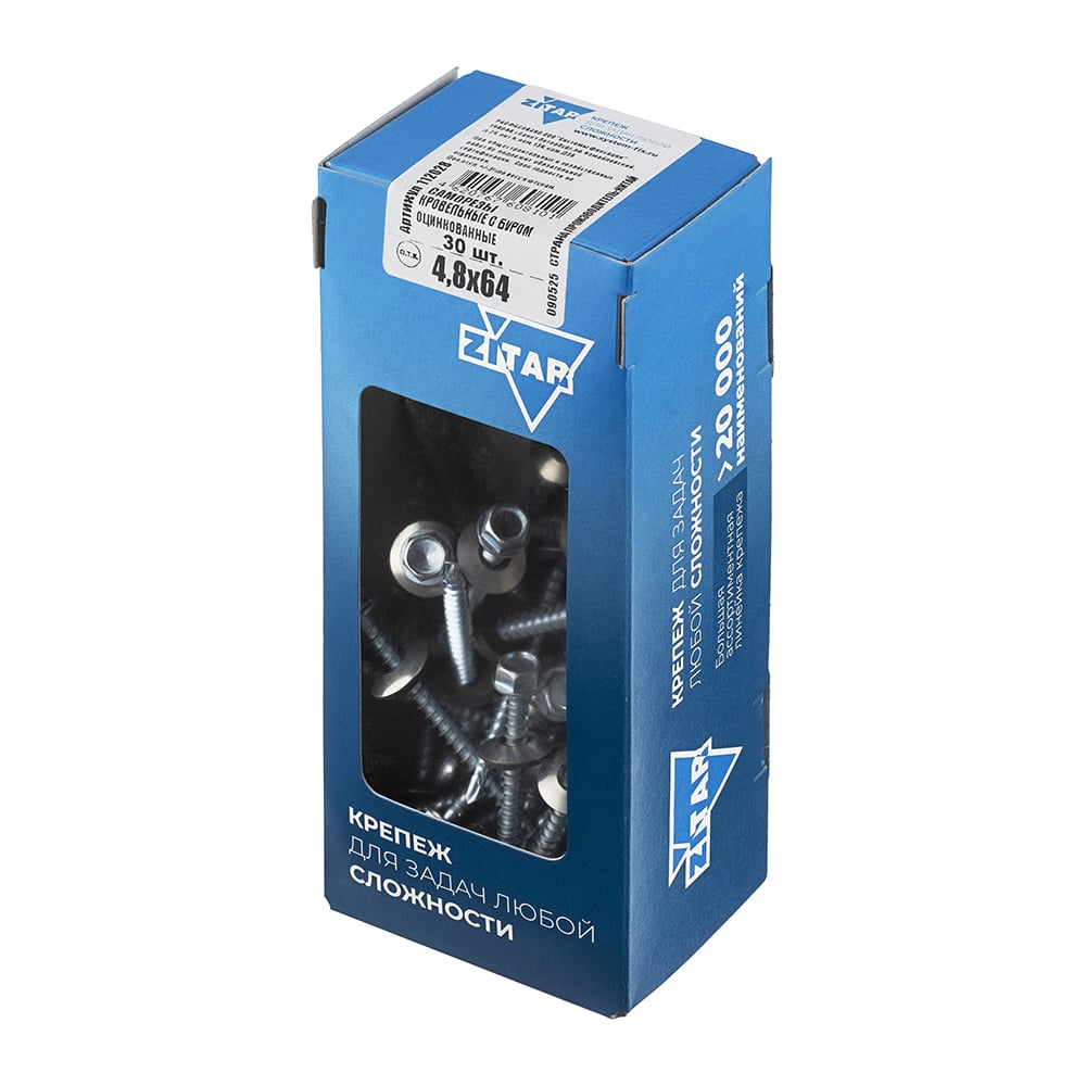 Саморез КР ZP со сверлом, 4,8x64 мм, 30 шт. в коробке с окном Zitar 112028