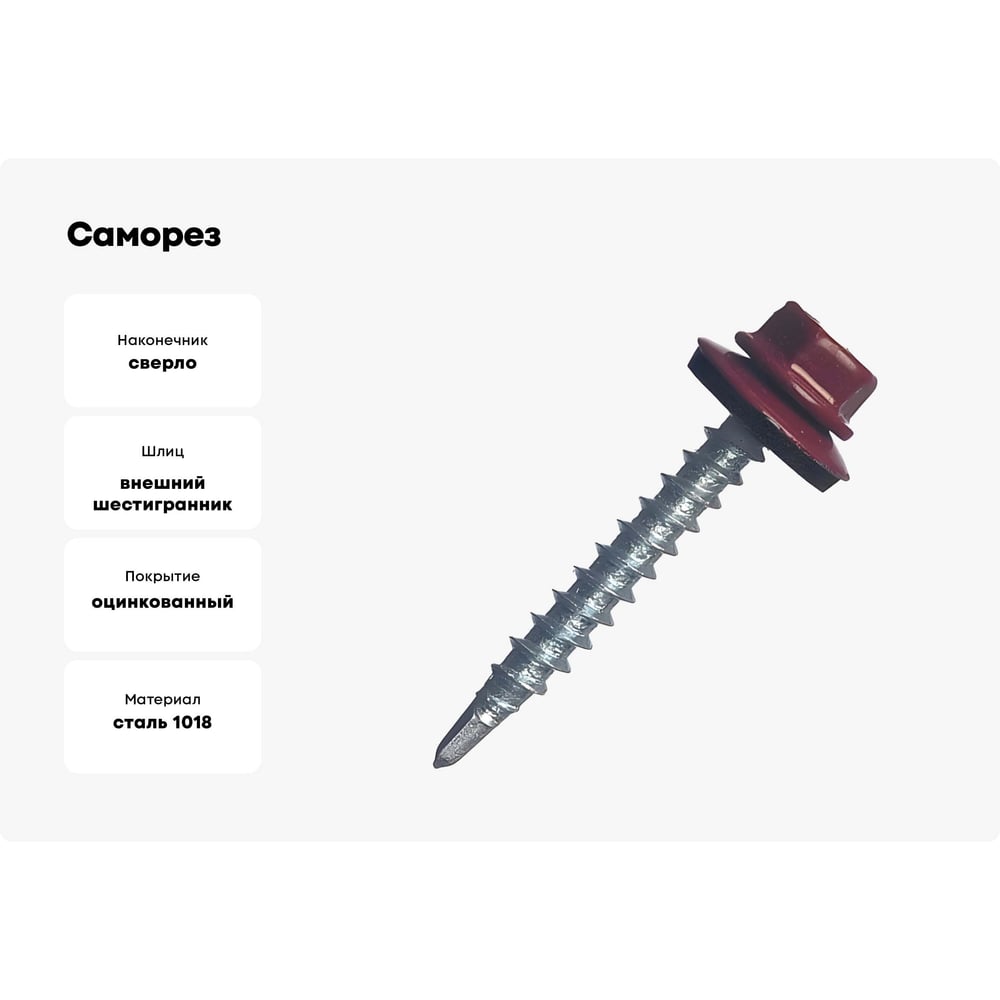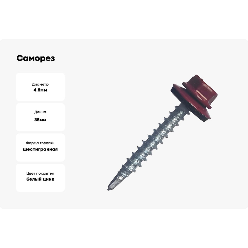 Саморез с шайбой EPDM BEFAST RAL3005 4,8x35, уменьшенное сверло, 500 шт. C300535500S