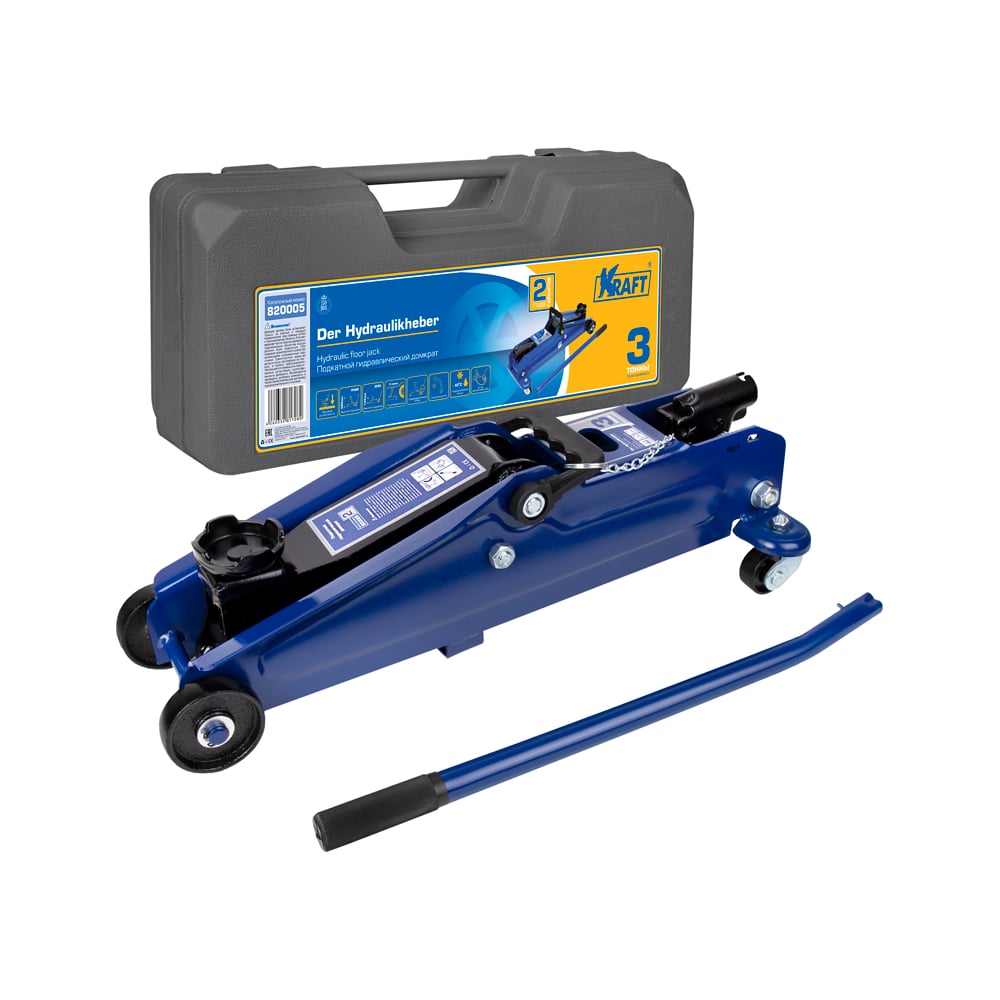 Подкатной гидравлический домкрат KRAFT 3 т, кейс KT 820005