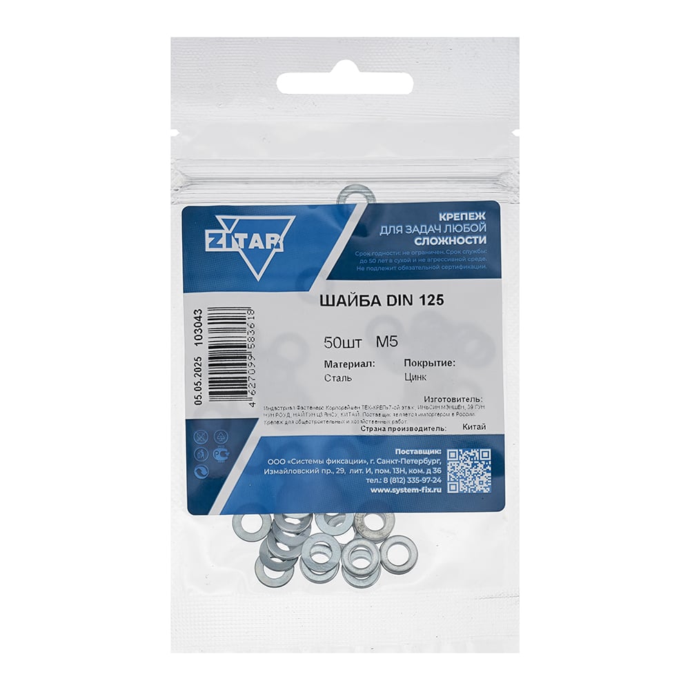 Шайба DIN125а плоская оцинкованный М5 50 шт Zitar 103043