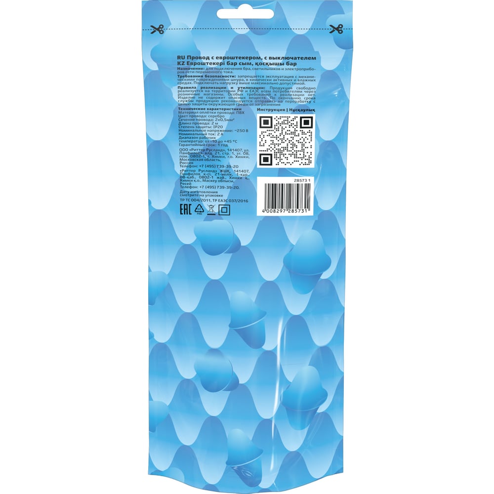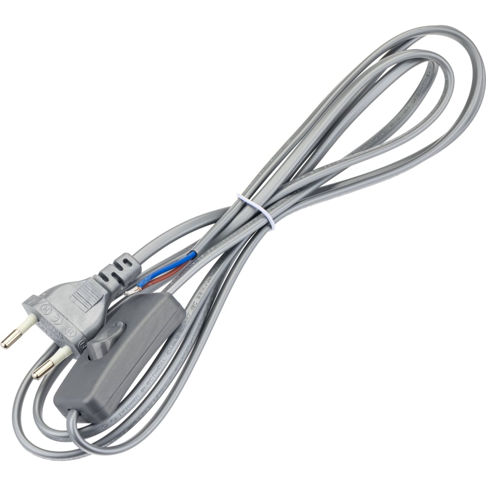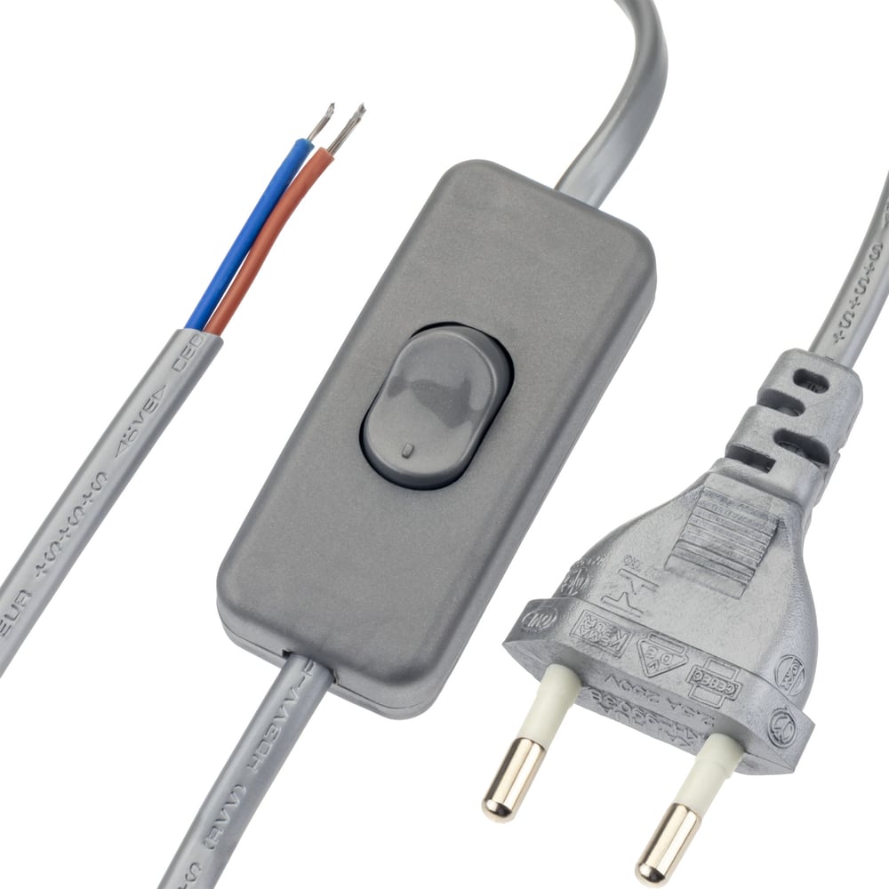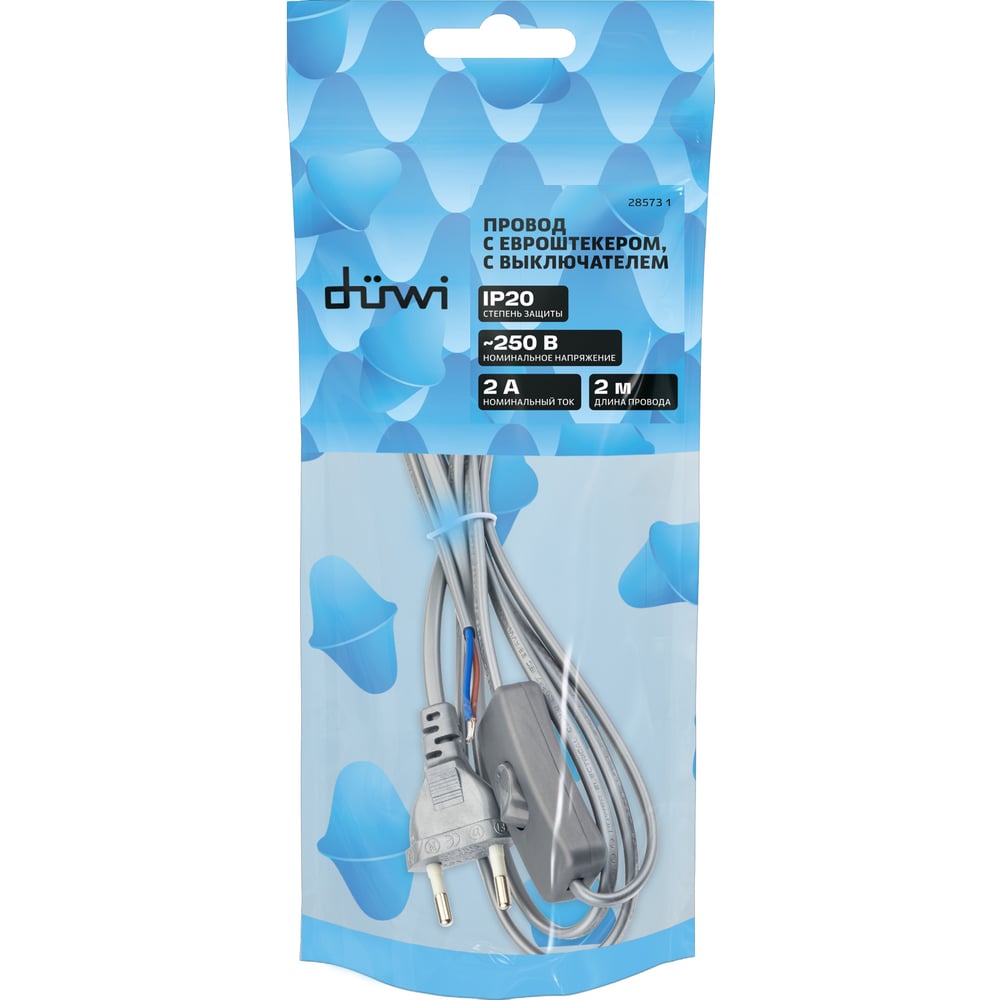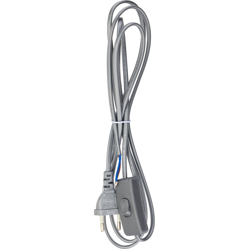 Провод с евроштекером и выключателем duwi серебро 2,0м H 03 VV-F 2x0,5 мм 28573 1