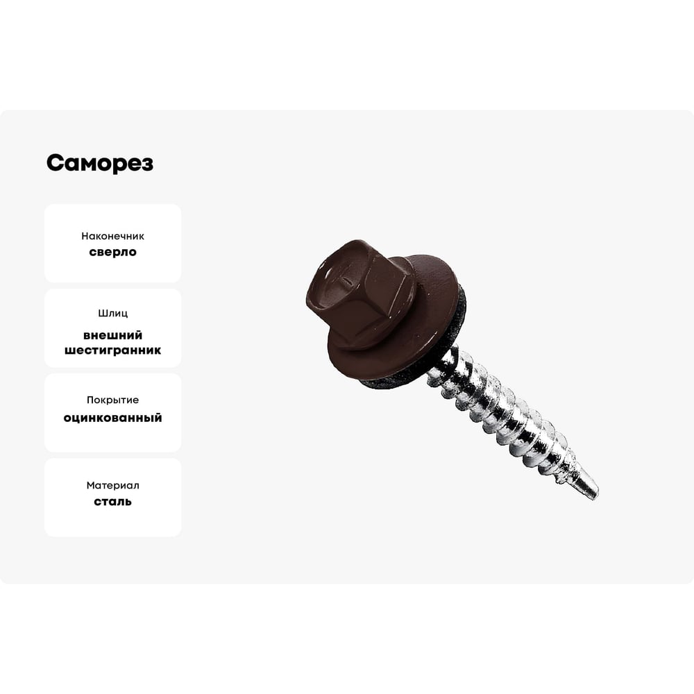 Саморез BeFast с шайбой EPDM наконечник сверло, окраш. RAL 8017, 5.5х19, 500 шт. C8017919500S