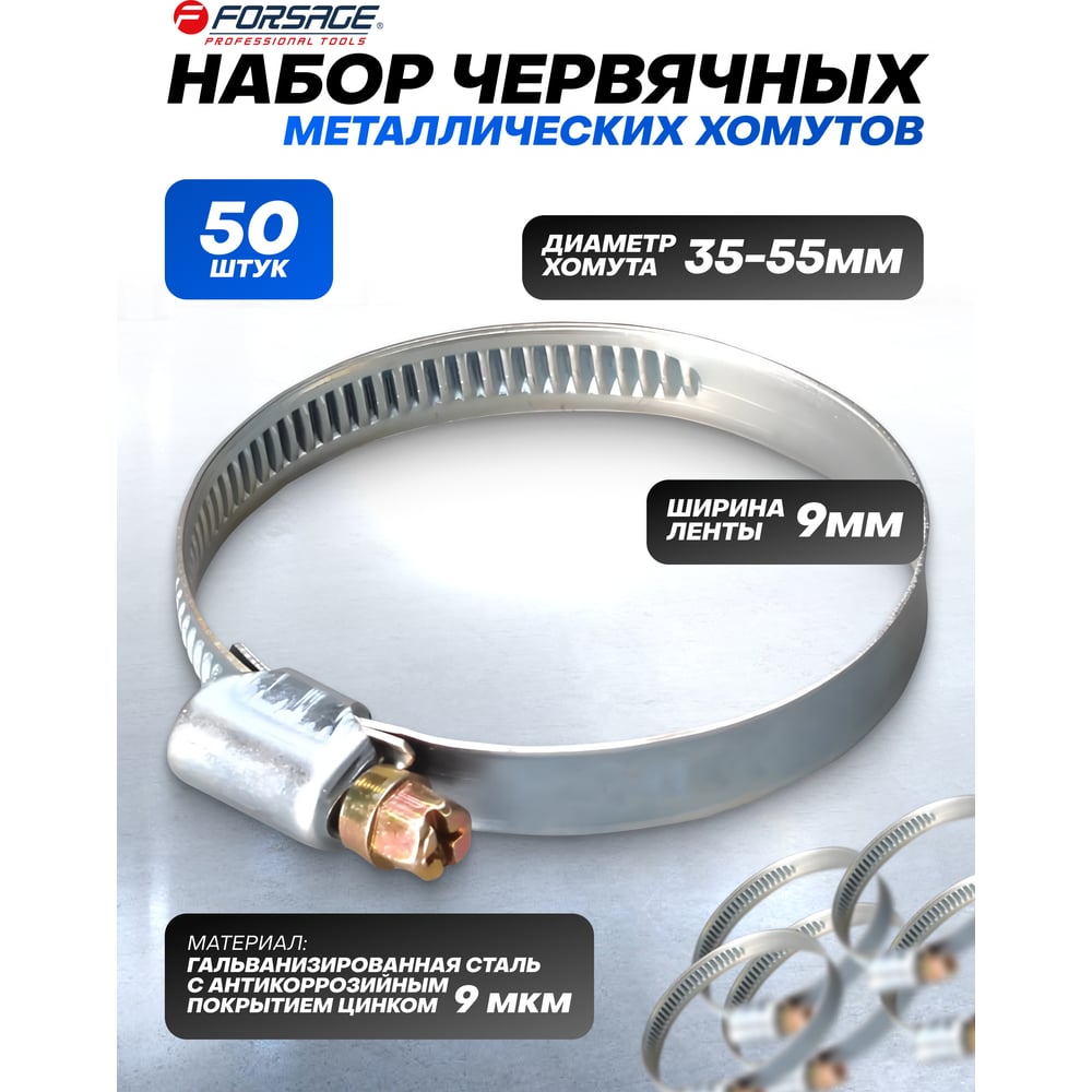 Металлический червячный хомут Forsage 35-55 мм, 50 шт. F-35-55(25818)